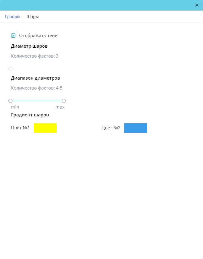 - Отображать тени. Позволяет показать/скрыть тени от шаров на графике.