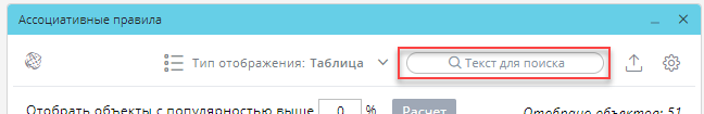 • Настройки — справа от поля ввода поиска и кнопки экспорта нажмите на иконку , чтобы открыть окно настроек ассоциативных правил.