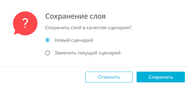 Если открыт запущенный сценарий, в диалоговом окне «Сохранение слоя» появятся опции «Новый сценарий» и «Заменить текущий сценарий»: