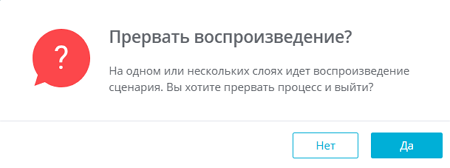 При подтверждении отмены воспроизведение сценария будет остановлено, а слой, на котором сценарий воспроизводился, будет удален. При выборе опции «Нет» воспроизведение сценария продолжится.