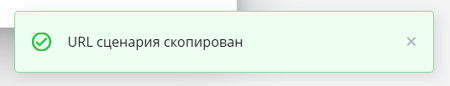 После нажатия в правом нижнем углу экрана отобразится нотификация «URL сценария скопирован»: